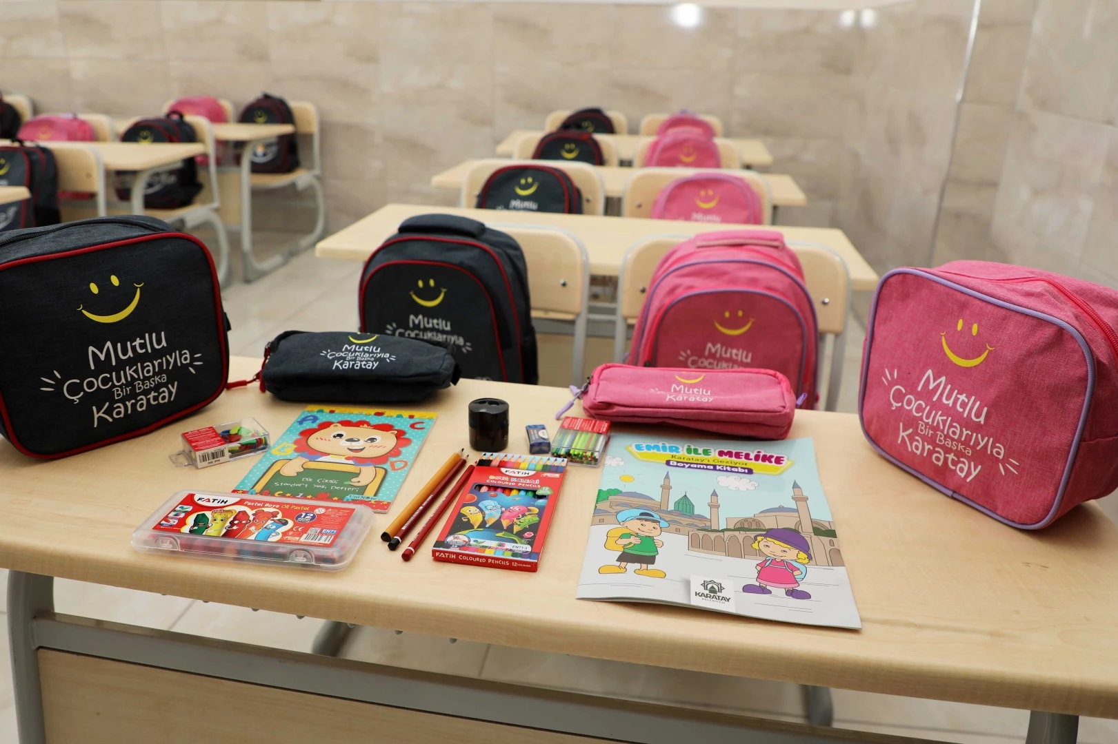 Bu kapsamda ilkokul 1'inci sınıfa başlayacak her öğrenci için okul çantasının yanı sıra kalem seti, kalemlik, silgi, kalemtıraş, beslenme çantası, kuru ve pastel boya setleri, güzel yazı defteri, boyama kitabı ile sayı çubukları ve fasulyelerden oluşan kırtasiye seti hazırlandı. Çantalar ve kırtasiye setleri, öğrencilerin sıralarındaki yerini almaya başladı.