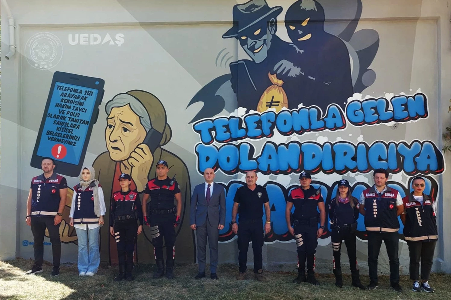 Bursa’da dolandırıcılık vakalarının arttığına dikkat çeken Bursa İl Emniyet Müdür Yardımcısı Suvat Sezer ise, "Bursa Emniyet Müdürlüğü olarak mala karşı işlenen suçlarda Türkiye’de ilk sırada yer alıyoruz. Kentimizde mala karşı işlenen 3 bin 500 suçun yaklaşık 2 bin 500’ünü dolandırıcılık oluşturuyor. Bu oldukça yüksek bir oran ve büyük kısmı telefonla gerçekleştiriliyor. Vatandaşlarımızı bu konuda sürekli uyarıyoruz. Polis ya da savcı kimseden para talep etmez. Bugün burada bir kez daha bu uyarıyı yaptık. UEDAŞ’ın bu konudaki katkısına teşekkür ediyoruz" diye konuştu.