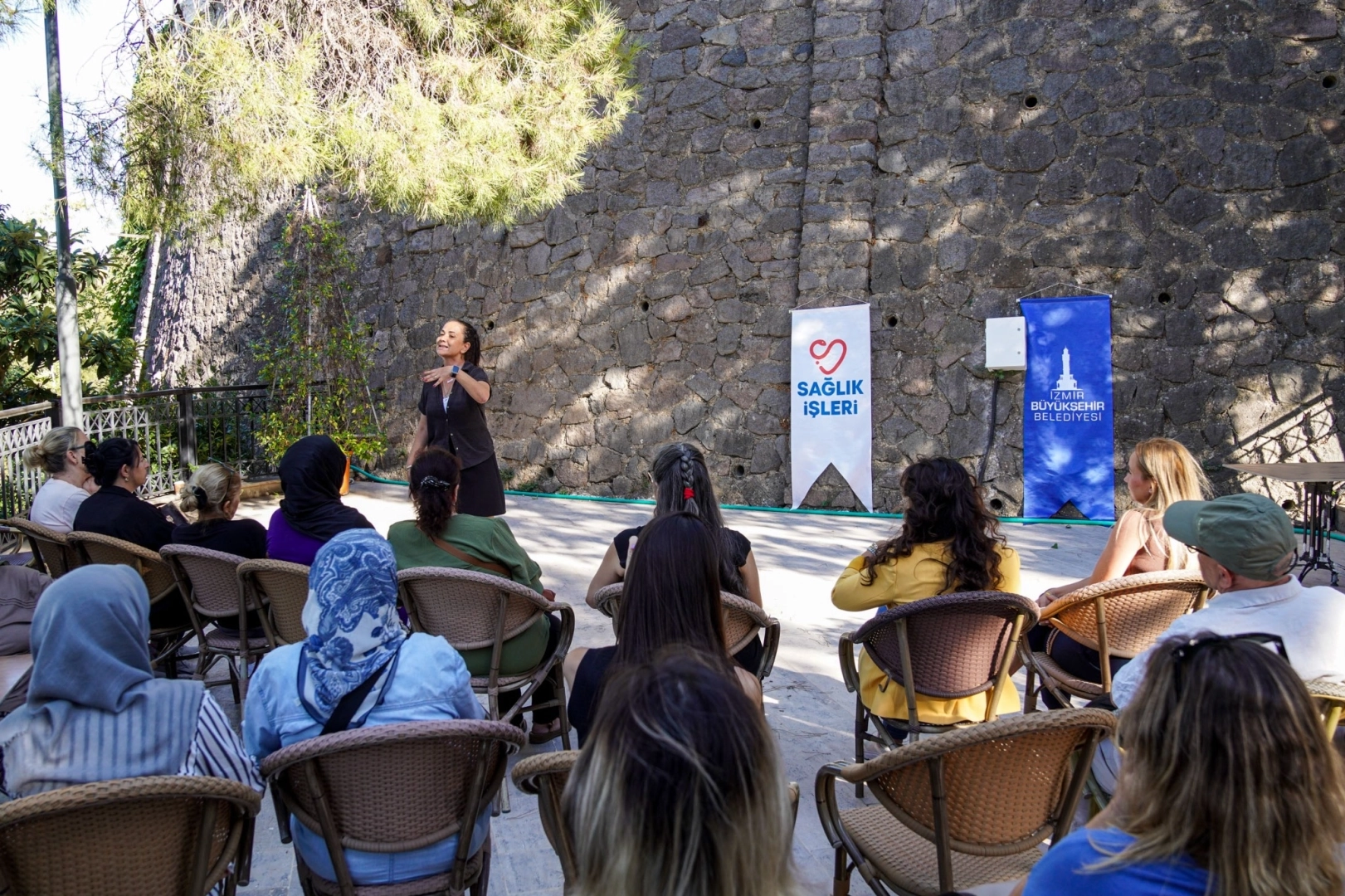 İZMİR (İGFA) - İzmir Büyükşehir Belediyesi, sağlık alanında bilinçlendirme ve koruyucu eğitim faaliyetlerini toplumun her kesimine ulaştırmaya devam ediyor. Bu kapsamda, Sağlık Eğitimleri Şube Müdürlüğü tarafından İzmir’in tarihi dokusunun önemli simgelerinden biri olan ve yakın zamanda İzmir Büyükşehir Belediyesi tarafından sosyal yaşam alanına dönüştürülen Şato'nun teraslarında "Bizim Mahalle Sohbetleri" başlatıldı.